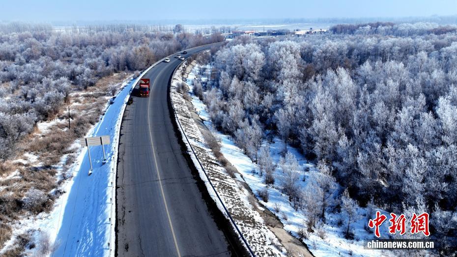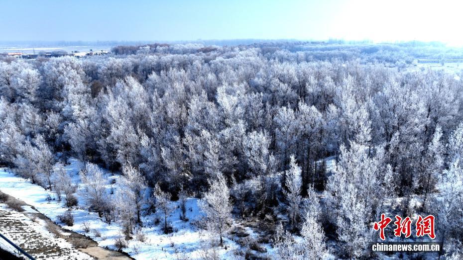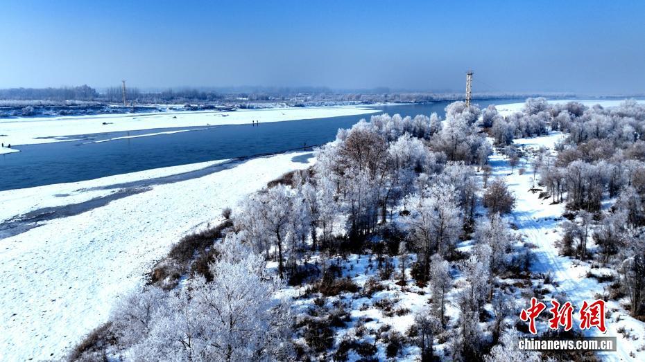 12月24日,新疆喀什地区莎车县叶尔羌河畔出现雾凇美景。韩亚伟 摄