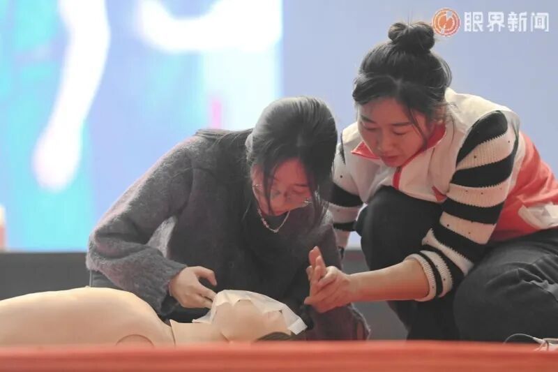 1月26日,在新疆医科大学(雪莲山校区),参加2026年“奔跑吧·少年”全国青少年冬季阳光体育大会志愿服务的志愿者们,正在参加心肺复苏、应急救护等医疗知识培训。 记者陈岩摄