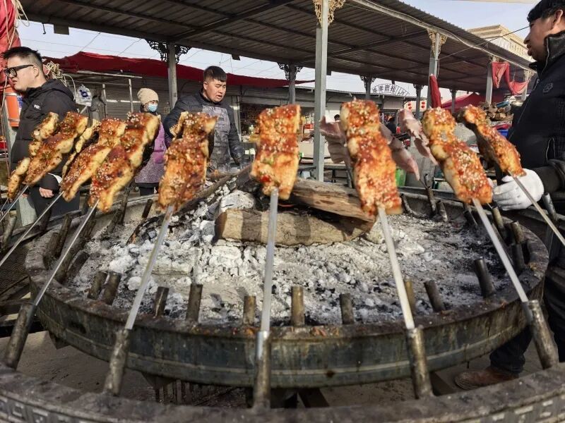 “来!朋友,尝尝烤鱼!”每周日开市的喀什牛羊大巴扎人声鼎沸。美食区里炭火正旺,烧烤的香气肆意撩动着往来游客的味蕾;牲畜交易区,吸引了更多好奇的游客,他们在当地人握手成交与乡音俚语中,触摸到那份延续已久的乡土脉搏。 从巴扎的烟火升腾,到古城街巷里贴满的春联与福字;从社火巡游的热闹喧腾,到篝火晚会的载歌载舞……这个春节,新疆喀什正用一场场热气腾腾的民俗盛宴,让南疆的年味愈发浓烈。