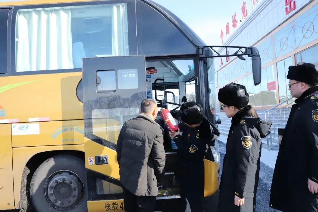 开关首日,执法人员直奔国际联运班车发车点、出入境货运通道等关键点位,全面排查安全隐患、规范运输秩序。在国际联运班车发车点,执法人员重点检查客运班车安全设施配备、车辆技术状况、应急设备有效性等情况,细致核查车辆安全管理制度落实情况,并与客运企业负责人深入交流,详细了解节后运营安排、驾驶员安全教育、车辆日常维保等管理工作,督促企业严格履行安全生产主体责任,坚决杜绝带病出车、违规运营,确保跨境旅客出行安全。