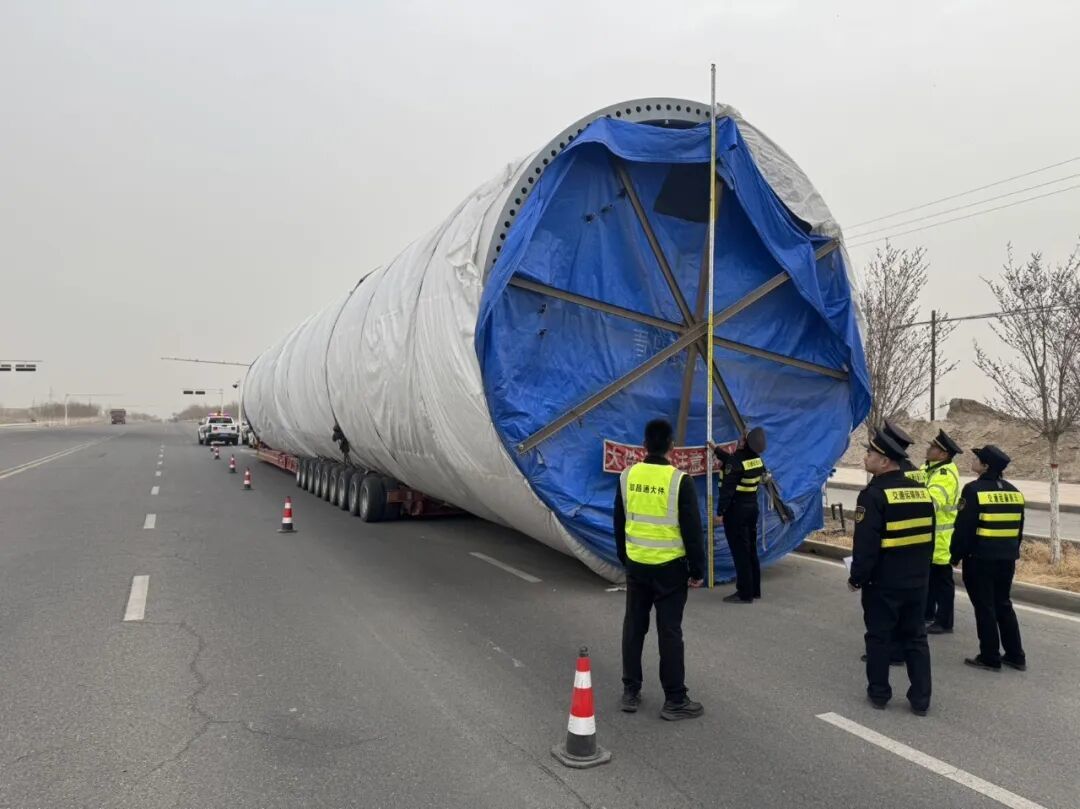 近日,阿克苏执法支队针对扬沙、大风及雨雪等极端天气预警,调配执法力量,历时80小时,途经库车、新和、温宿、乌什等五个县(市),总行程600公里,圆满完成了每车货总重159吨、长32米、宽5.1米、高5.35米、装载风电塔筒的10辆“巨无霸”安全护送任务,为阿克苏执法支队积累了在极端天气下的大件运输护送经验,提升了大件运输服务和保障能力。