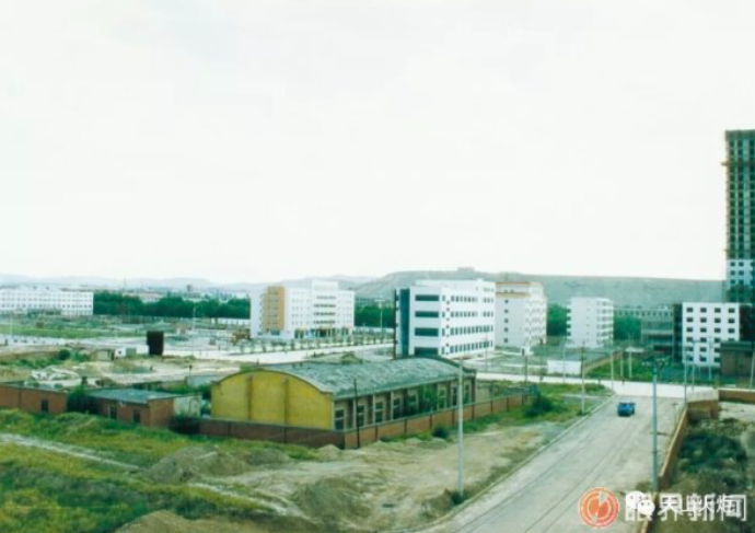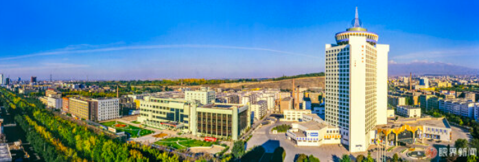 1999年9月,从新疆准噶尔大厦拍摄的新疆维吾尔自治区图书馆、新疆环球大酒店及乌鲁木齐市北京南路一带街景。李向东摄