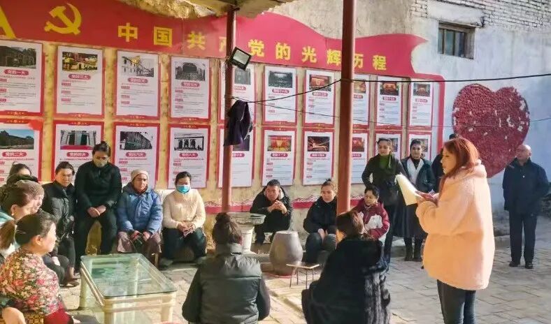 园艺场村“红色小院”里,干部群众共同聆听政策宣讲。