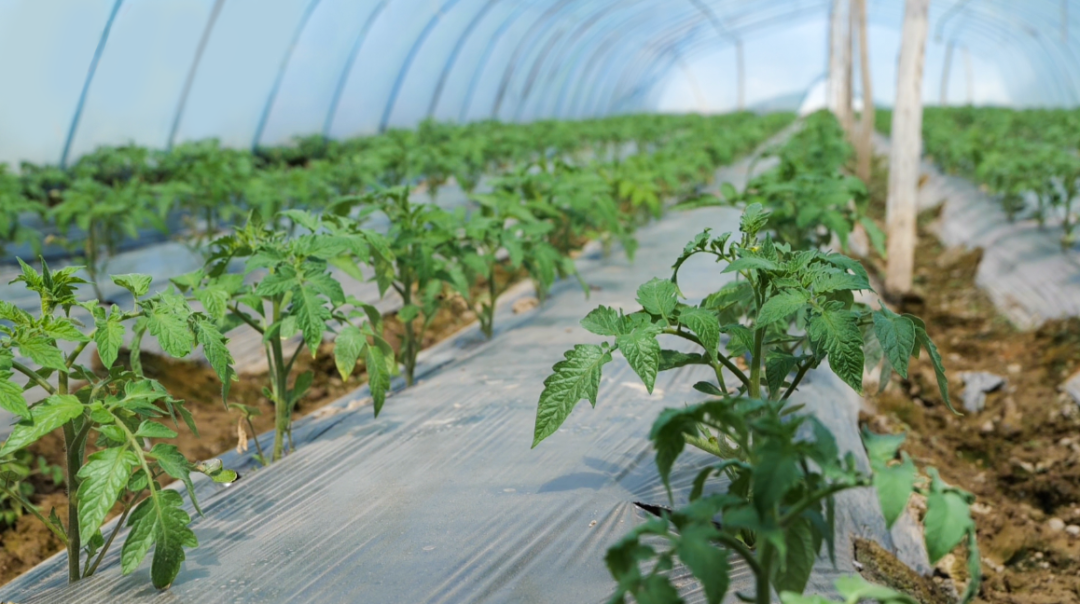 园艺场村拱棚内绿意正浓,蔬菜植株挺拔、色泽鲜亮。