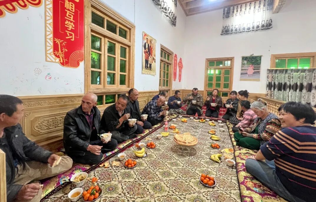 平日里,谁家来了远客,邻居们也会主动上门,帮着洗菜切肉、张罗饭菜,大盘鸡端上桌,手抓肉摆上席,大家围坐在一起,尝的是各家手艺,品的是同一份情谊。