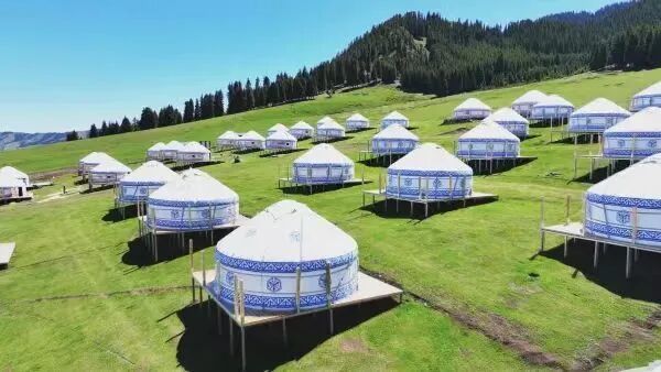 这有赖于民宿从设计到建设,融入了统战、文旅以及白杨沟镇各族干部群众的集思广益。毡房内部保留了传统地毯、冬不拉、非遗刺绣、毡绣等元素,同时配备独立卫浴、恒温供暖、网络覆盖等现代设施,最为重要的是,毡房的地板采用了悬空支撑,离地面近80公分,既不会破坏草地,又起到了防寒隔潮的作用,且毡房、木栅栏等整体风格与周围毫无违和感,置身其间,恍如画中,正如白杨沟镇各族群众时常弹唱的那首歌曲一样:“美丽的草原我的家,风吹绿草遍地花,彩蝶纷飞百鸟儿唱......草原就像绿色的海,毡包就像白莲花,牧民描绘幸福景,春光万里美如画......”(乌苏市白杨沟镇供稿,通讯员:海斯尔·叶力根)