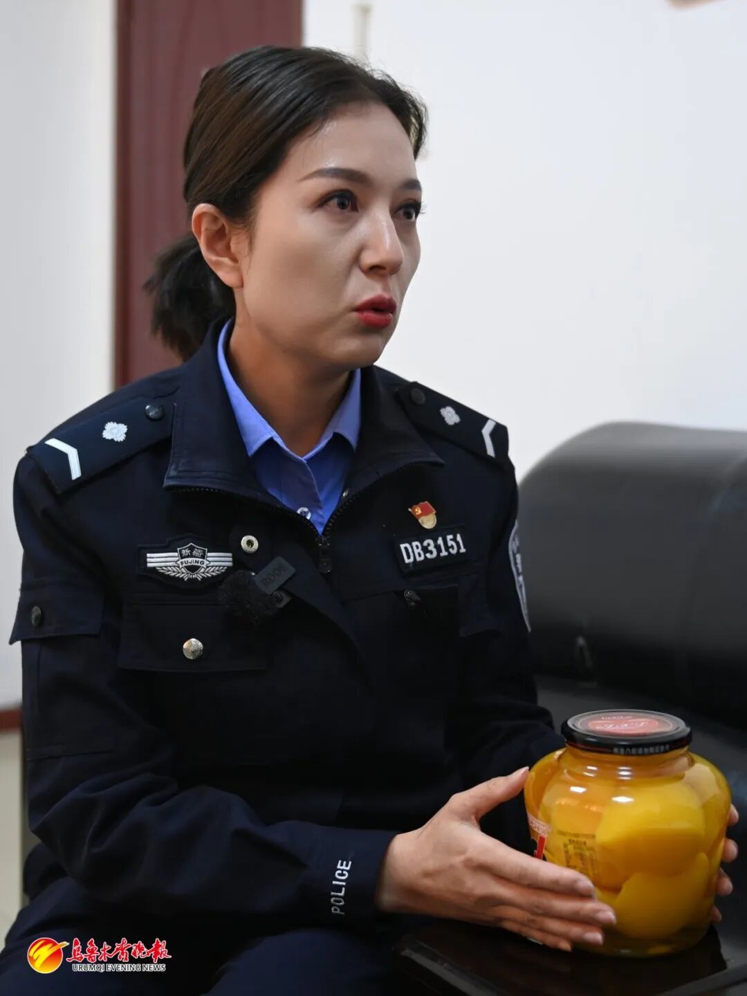 乌拉泊街道派出所民警马瑞萍提到崔文亮所长对她的帮助时眼圈泛红。在派出所有个不成文的传统,只要有民警生病,都会收到他亲自送上的黄桃罐头。(3月26日摄)