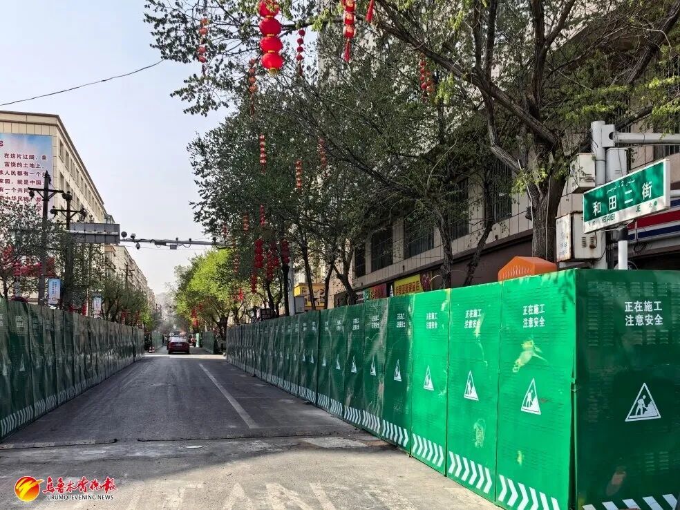 和田二街旅游美食街区道路改造工程于4月10日正式启动,4月9日,施工路段已进行围挡。