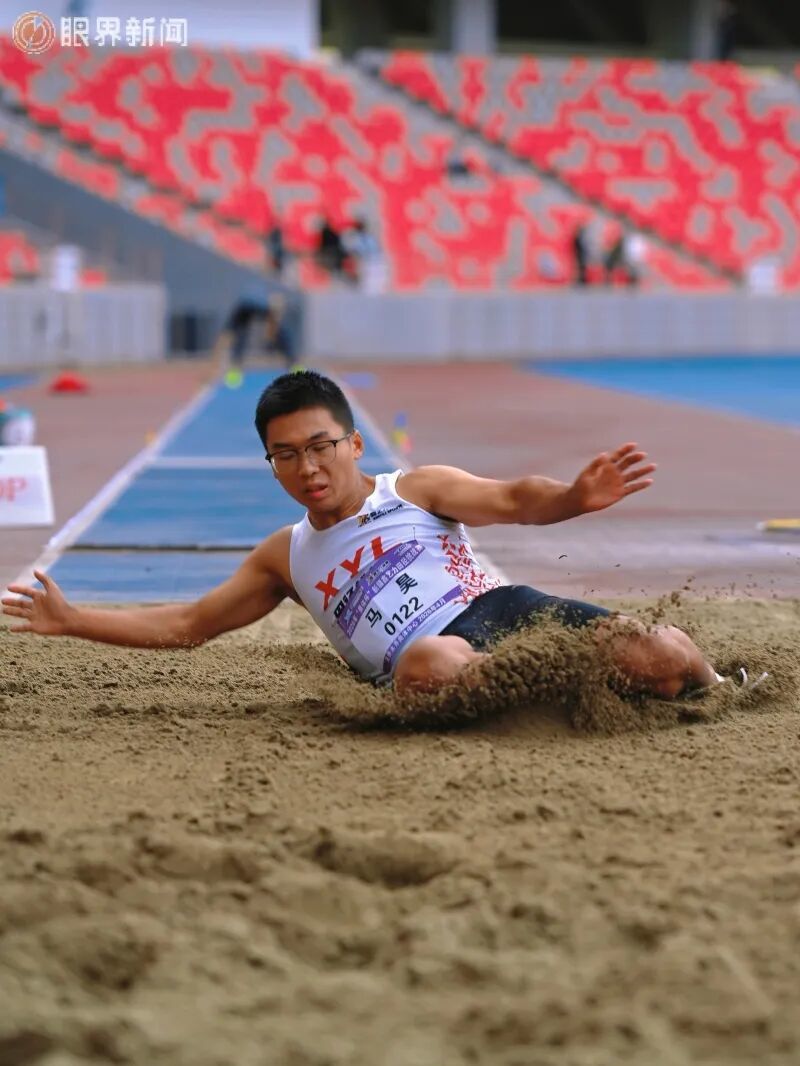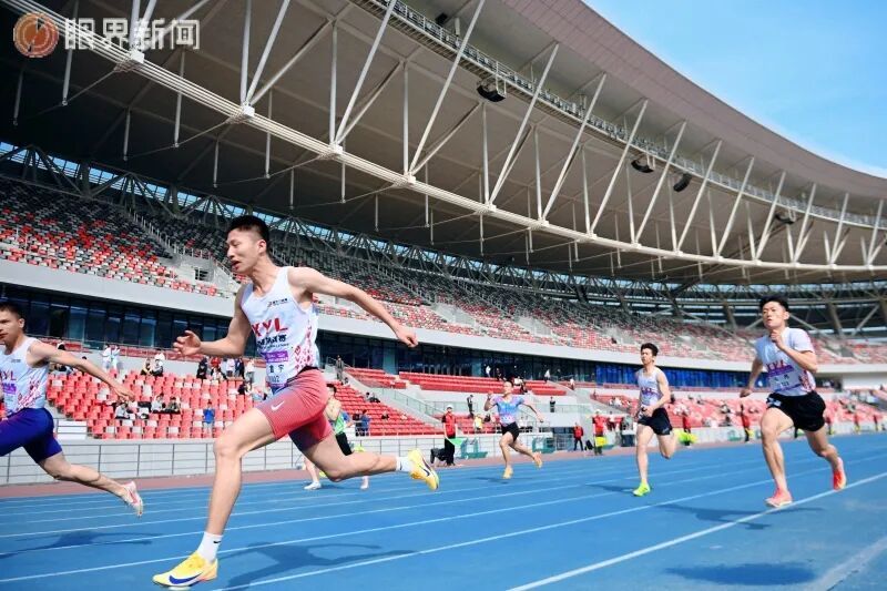 田径赛场上,选手们个个奋勇争先、全力以赴,在奔跑、投掷、跳跃中展现青春朝气。