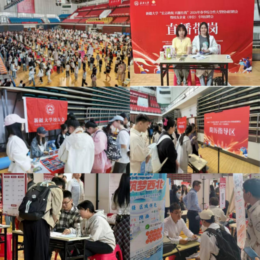 为深化校企合作,搭建人才供需对接平台,助力毕业生高质量充分发展,新疆大学于2026年4月8日(周三)17:00在红湖校区体育馆成功举办新疆大学“宏志助航 兴疆有我”2026年春季综合性大型校园招聘会暨校友企业(单位)专场招聘会。